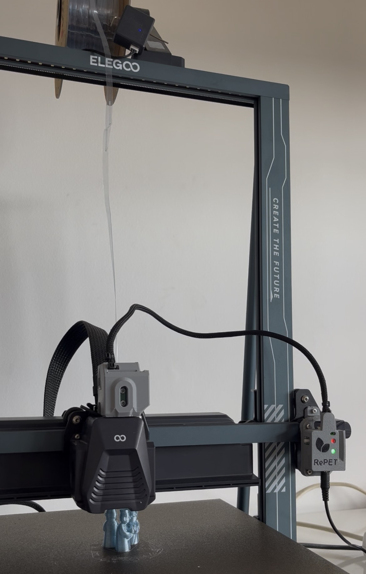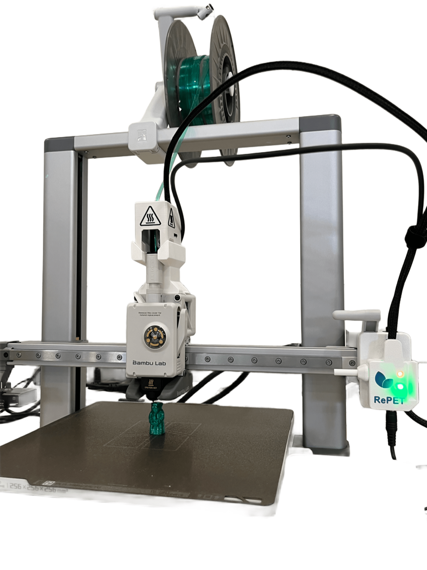 RePET is an innovative extrusion system that allows you to print directly using strips of recycled plastic bottles.